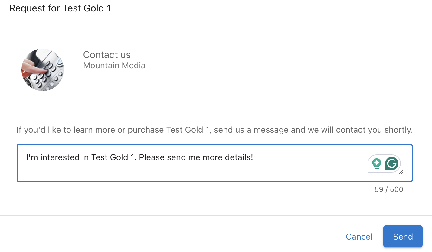 This will prompt a window in which you can either email your salesperson to express interest in the product or purchase it on your own.
