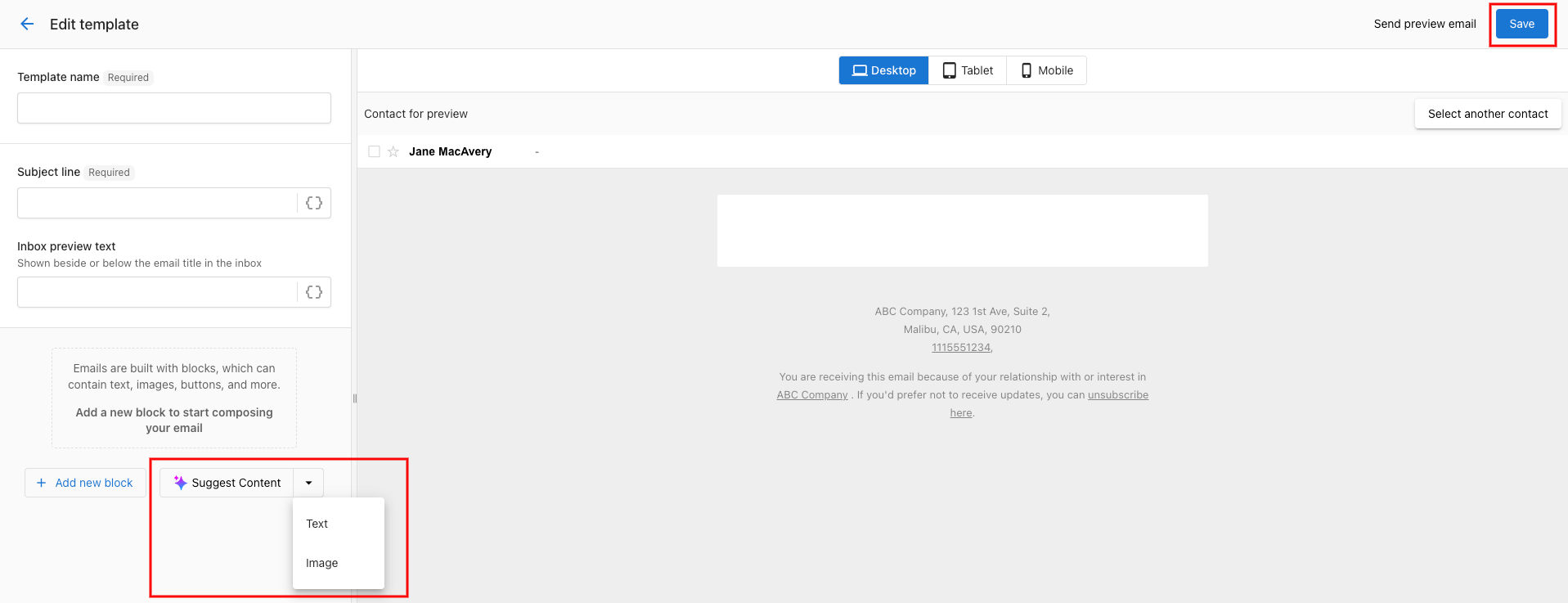 Step 4 - Create your email. Try using AI to generate email content!